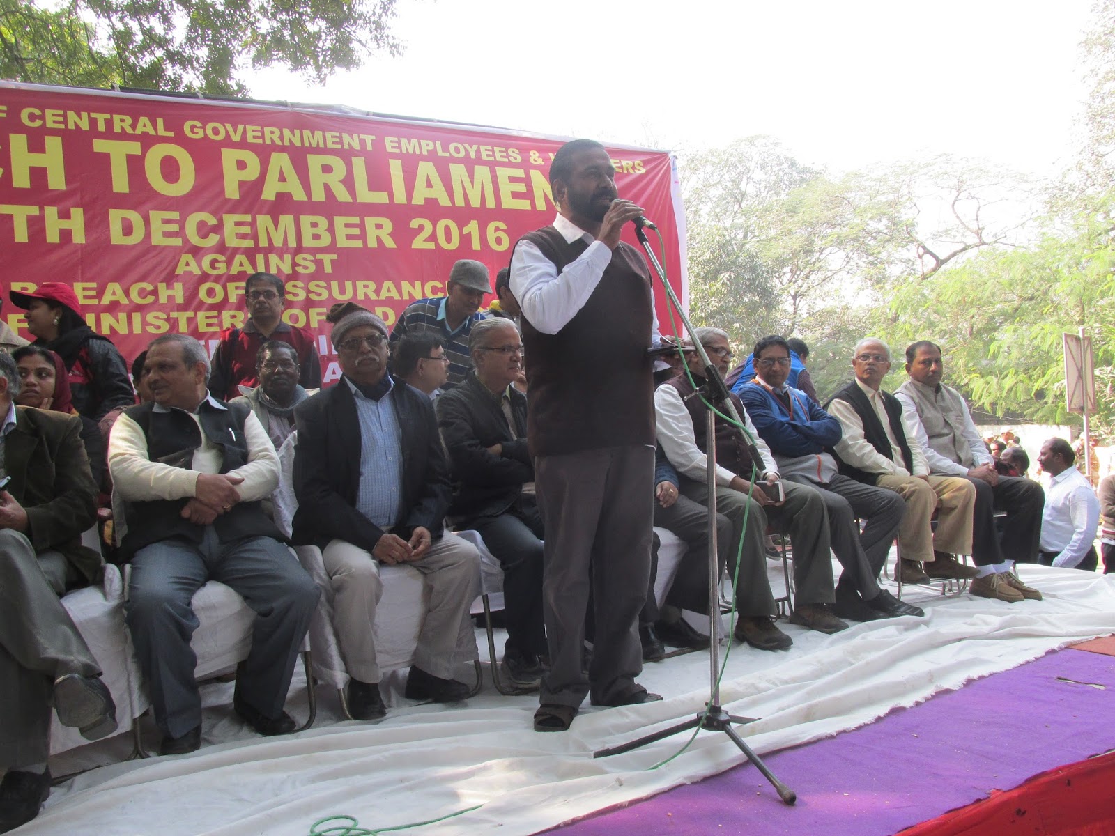 A massive Parliament March was conducted on 15th December 2016, as per the decision of the Diamond Jubilee year National Conference of the Confederation held at Chennai in August 2016. Central Government employees from all over the states belonging to all affiliates of Confederation participated in the March and Rally. Autonomous bodies employees and pensioners Central Government Pensioners etc. are also extended their support and solidarity by joining the rally.